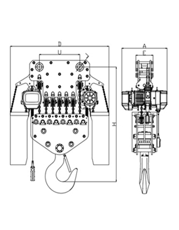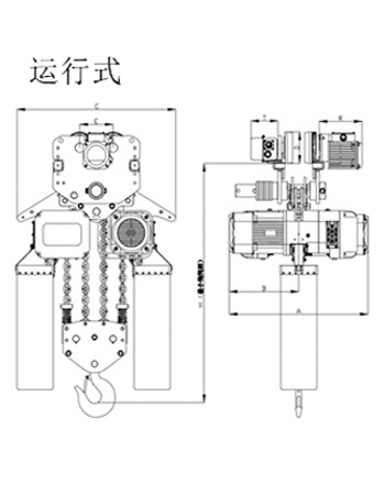 | 運(yùn)行式環(huán)鏈電動(dòng)葫蘆(30T-50T)尺寸參數(shù): | ||||||